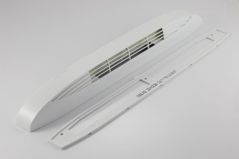 Elementy nawiewnika wykonane są z tworzywa technicznego ABS. Montaż za pomocą wkrętów. Wkręty montażowe są dołączone do nawiewnika. Czerpnia nawiewnika wyposażona w siatkę przeciw owadom.